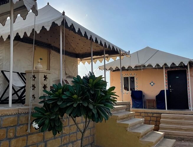 Witness breathtaking sunsets, explore remote villages, and enjoy authentic Rajasthani cultural performances under the starlit sky.